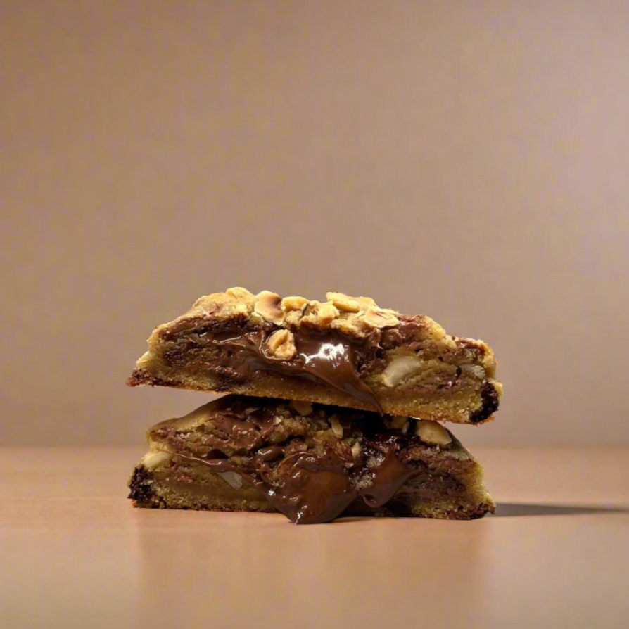 Vår egna Nutty Nutella! En lyxig cookie fylld med krämig Nutella®, belgisk mörk- och mjölkchoklad samt bitar av krossade och rostade hasselnötter.