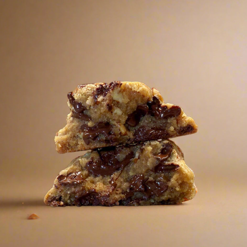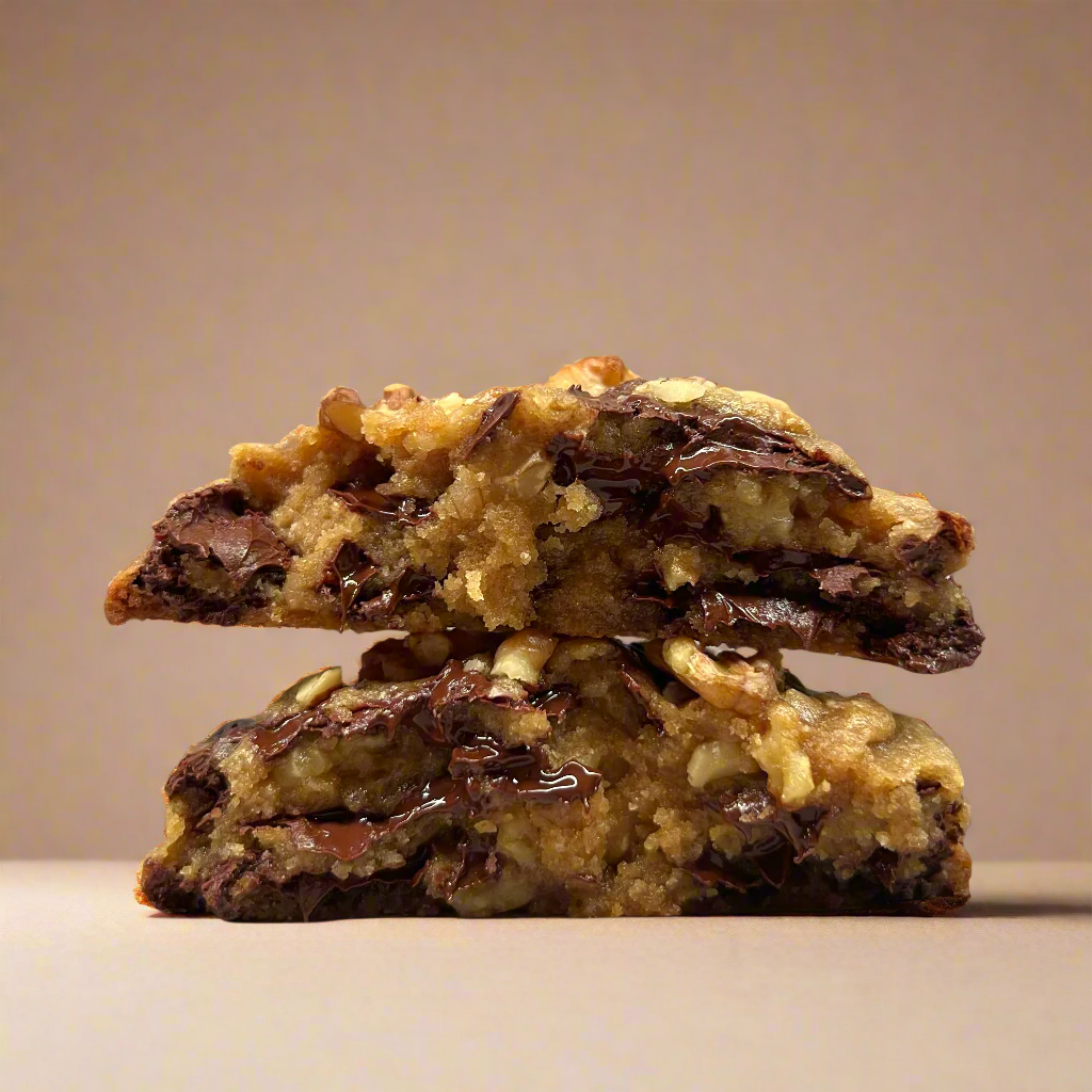 Den klassiska NYC style Chocolate Chip Walnut Cookien. Fylld med mörk belgisk choklad och bitar av valnötter.