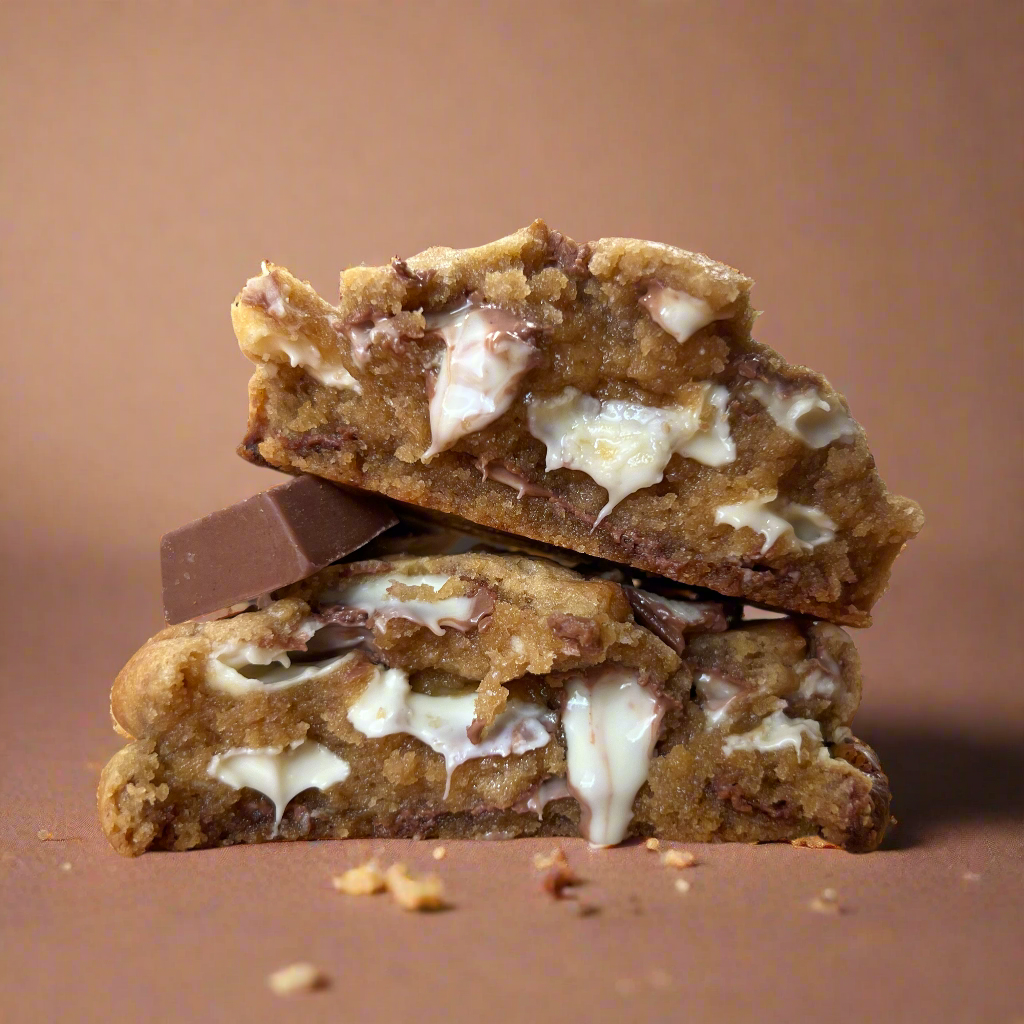 Vår Biscoff Cookie är fylld med belgiskt vit- och mjölkchoklad, krossade Biscoff®-kex och krämig Biscoff® i mitten av cookien.