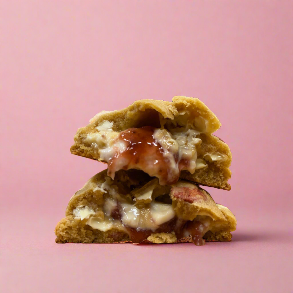 Red Velvet cookie fylld med krämig färskost och delikat vit belgisk choklad.