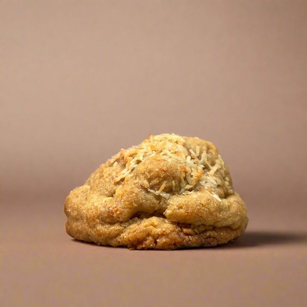 Vår Coconut Cookie, fylld med rostad kokos och belgisk choklad med smak av karamell. Denna krispiga och sega cookie kommer garanterat göra en cookieälskare glad.